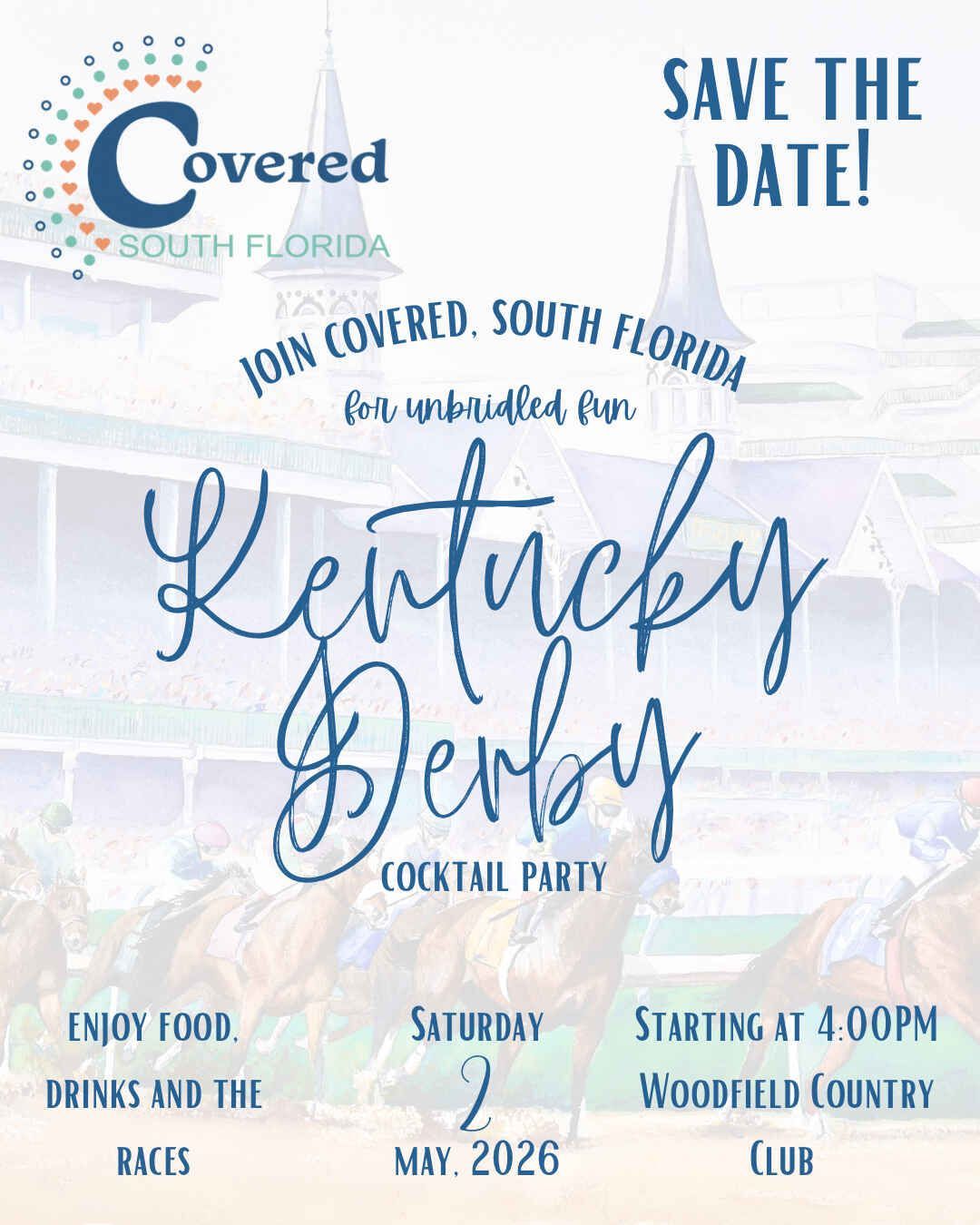 Join us for an unforgettable second annual Kentucky Derby Party at the fabulous Woodfield Country Club in Boca Raton on May 2, 2026! Get ready to enjoy the races with delectable food, the Derby's signature drink, a cigar rolling experience and a chance to go home with silent auction item or 50/50 raffle winnings. All proceeds benefit Covered, South Florida, a nonprofit committed to ending diaper need in our community.